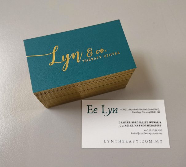 A one side full background printing on a 480gsm smooth uncoated card stock with gold edge gilding.